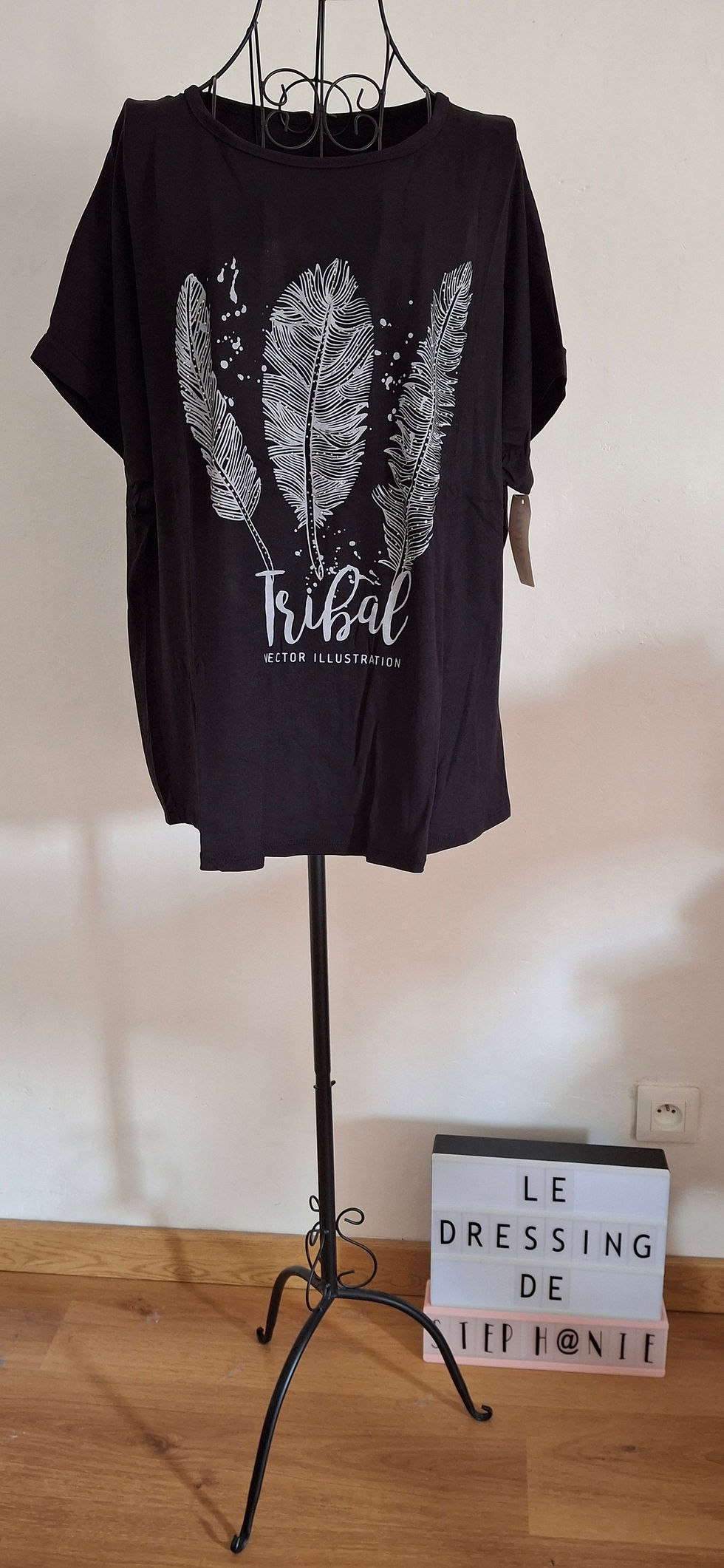 Top imprimé plume tribal noir grande taille